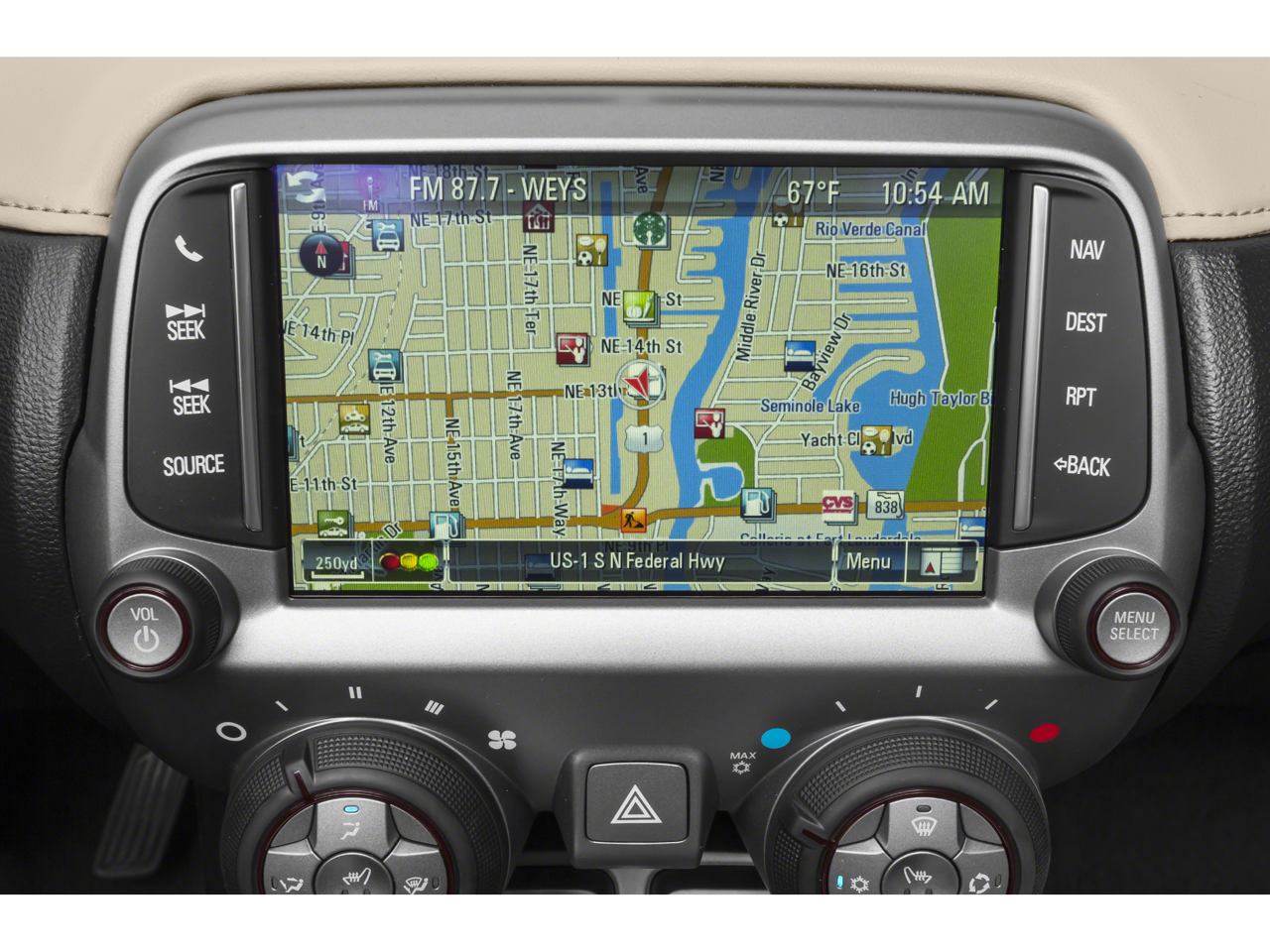 - The vehicle is equipped with a built-in voice activated navigation system.